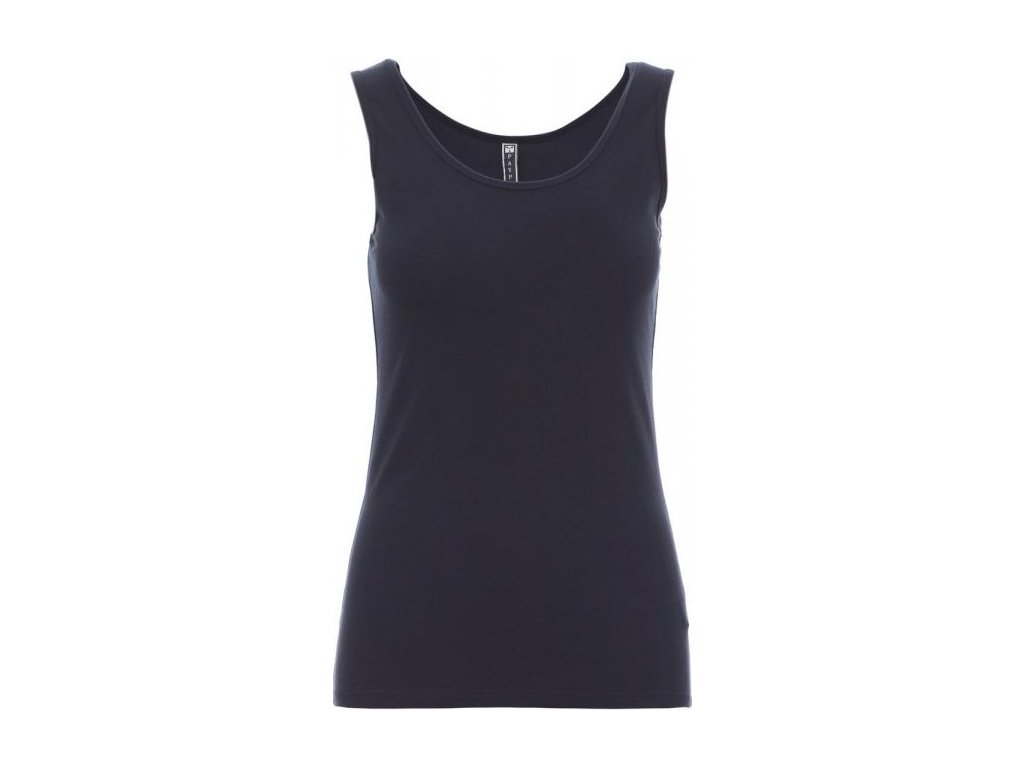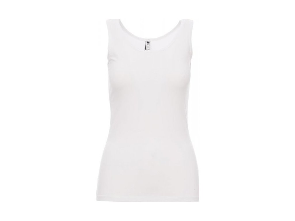 TRIČKA_SENZA MANICHE_Dámské vyštíhlené tílko s hlubokým kulatým výstřihem, 1 cm lem u krku a u rukávu.