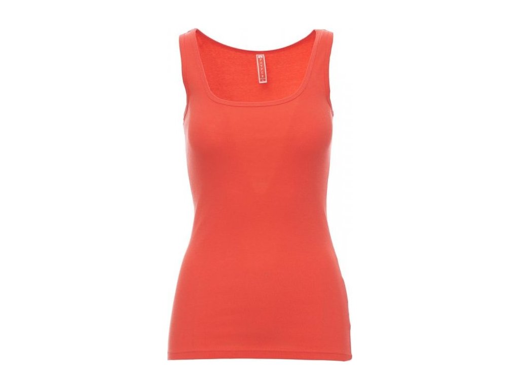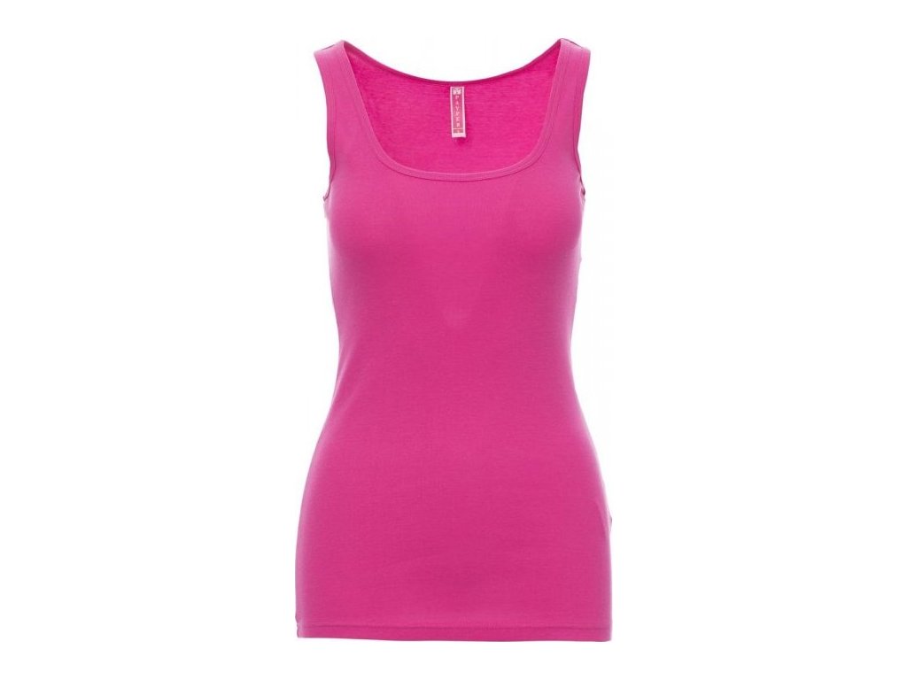 TRIČKA_SENZA MANICHE_Dámské vyštíhlené tílko s hlubokým kulatým výstřihem, 1 cm lem u krku a u rukávu.