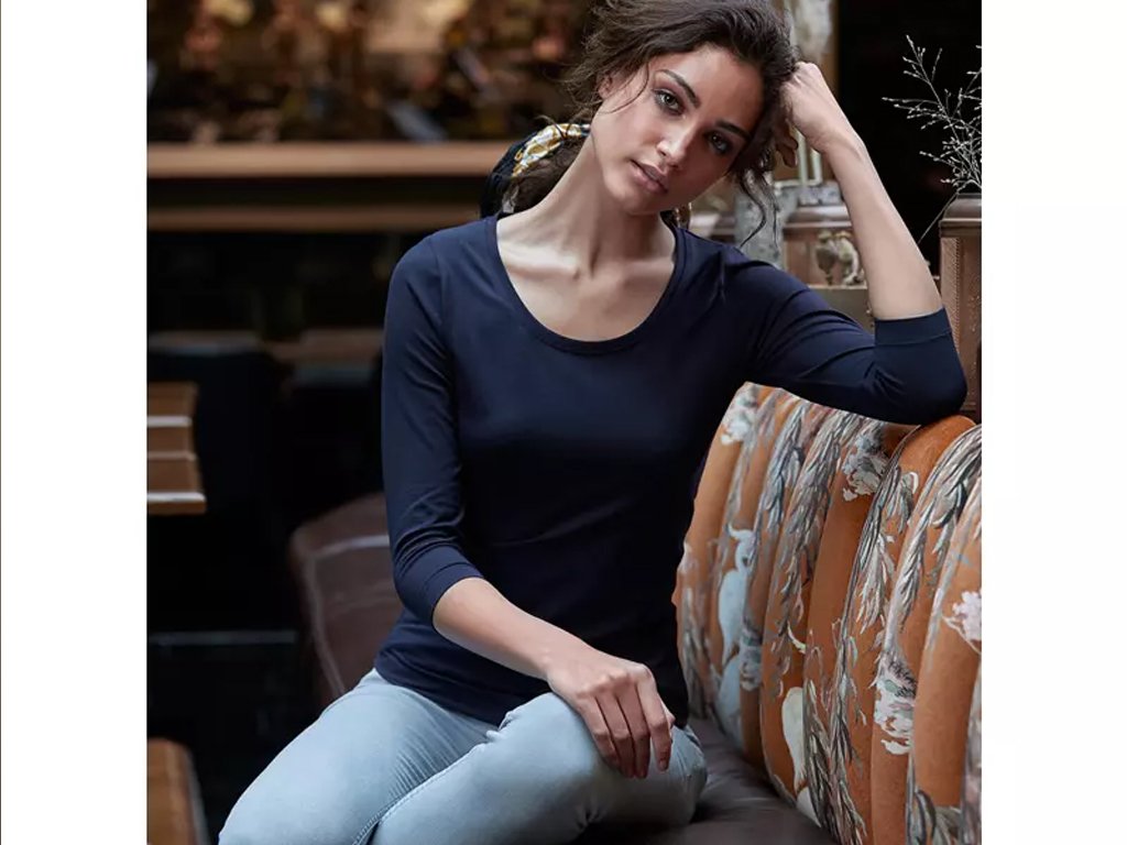 Vypasovaný střih, hluboký kulatý výstřih s elastanem, dvojité švy, "full feeder" elastan pro extra měkký povrch