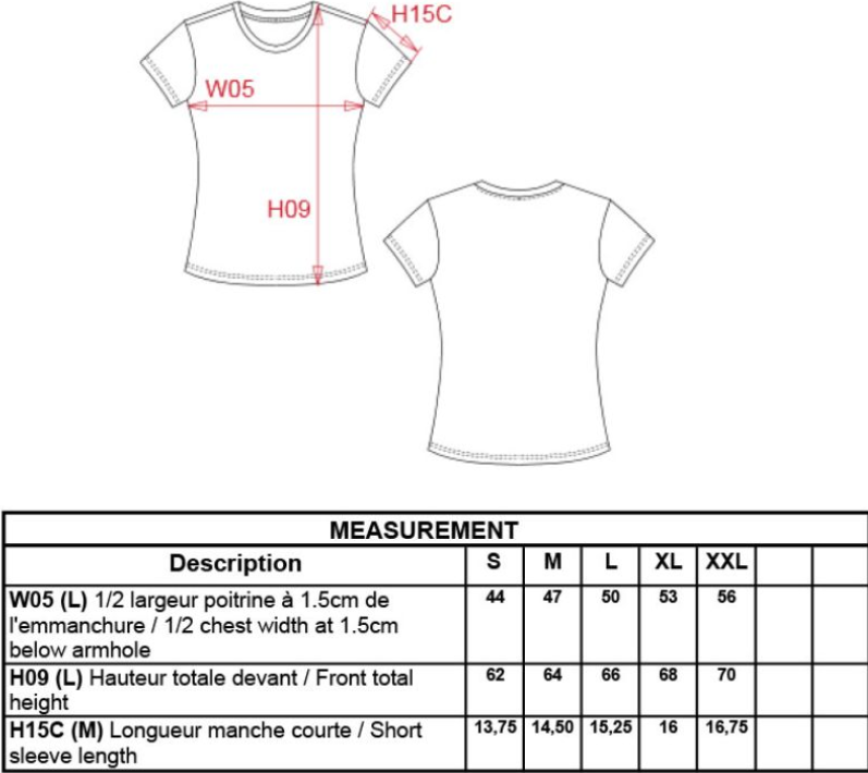 Vypasovaný střih, kulatý výstřih, dvojité švy na rukávech a lemu, pratelné na 40°, nelze sušit v sušičce, nelze chemicky čistit