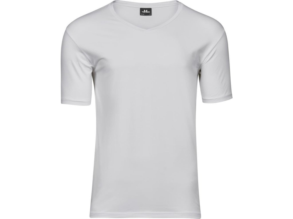 Vypasovaný střih, úzce lemovaný výstřih do V, souvislá lemovka na ramenou, dvojité švy, vyrobeno z dlouhovlákné bavlny, "full feeder" elastan pro extra měkký povrch