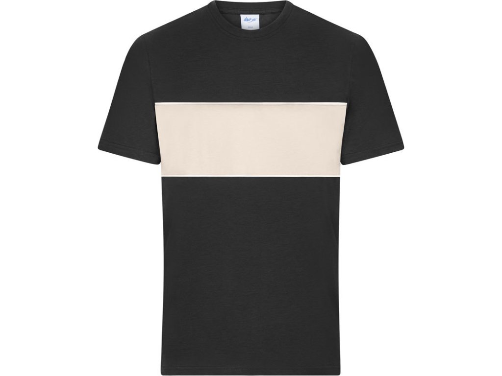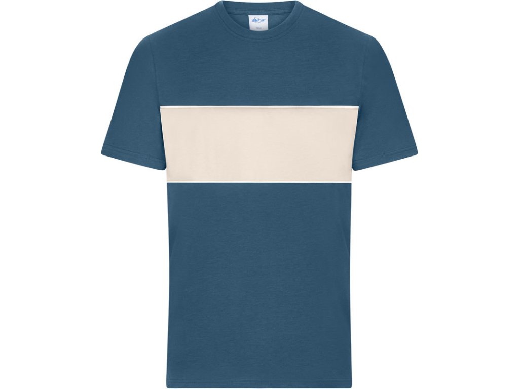 Kulatý výstřih s elastanem, kontrastní barevná vsadka s paspulkou vpředu, pratelné na 30°, šetrné praní, nelze sušit v sušičce