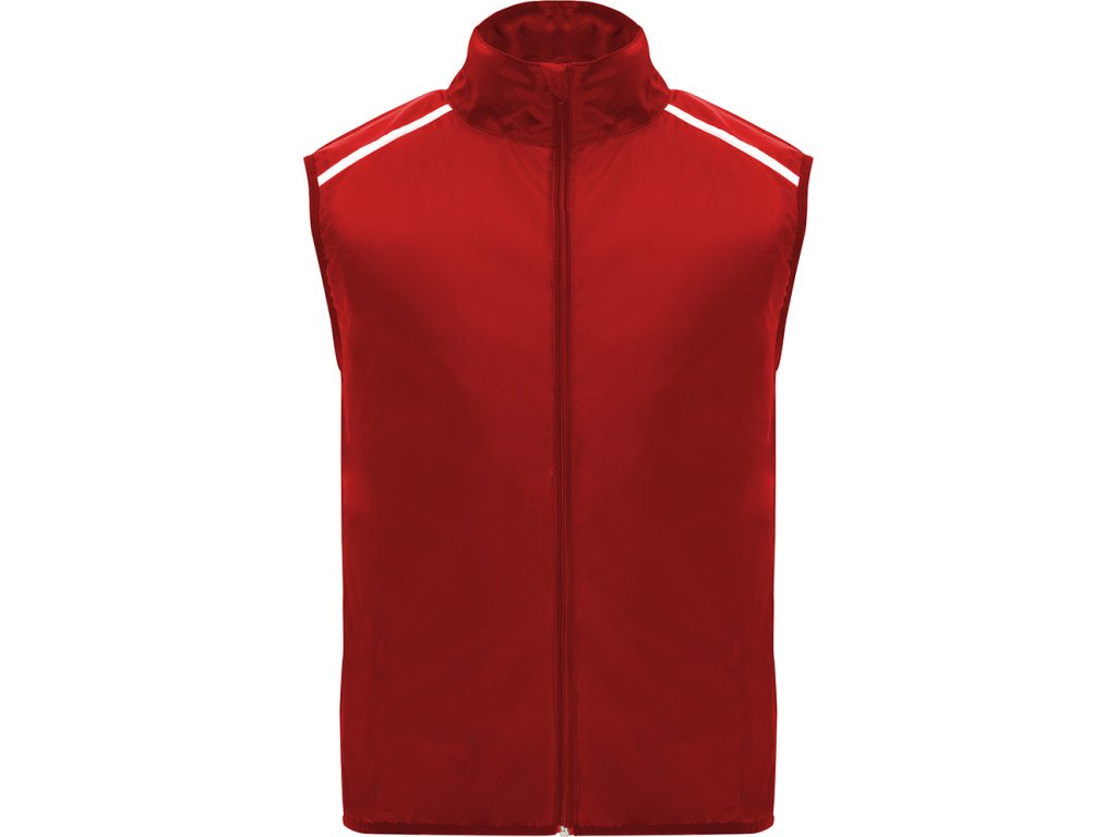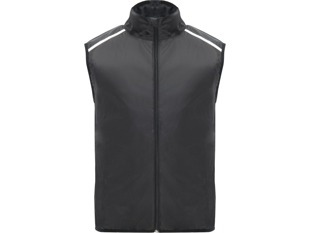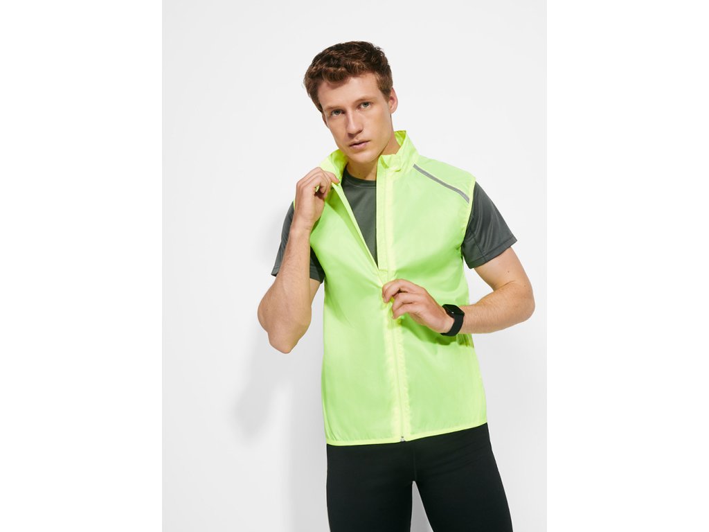 Lehká funkční vesta. Přední zapínání na zip tón v tónu s ochranou brady. Elastické lemování na průramcích a spodním lemu. Spodní lem zadní části z látky s mikro perforací. Reflexní detaily na horní, přední a zadní části. Kapsa s pruženkou na uložení vesty a nošení na zápěstí. Materiál na přední straně: 100% polyester. Materiál na zadní straně: 100% polyester s mikro perforací.
