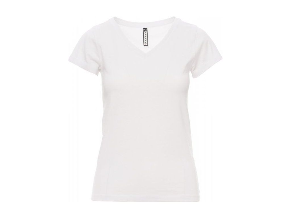 TRIČKA_MANICA CORTA_Dámské vyštíhlené tričko s krátkým rukávem a hlubokým výstřihem do V, pružný žebrovaný lem 1,2 cm ze směsi spandex ve spodní části, krátké přiléhavé rukávy a postranní šev pro pohodlnější nošení, dvojjehlové prošití na ramenou, bavlněná spodní část límečku a pásky.